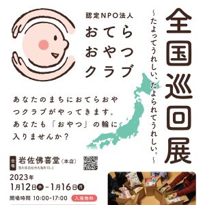 「おてらおやつクラブ全国巡回展@高松市仏教会」は、1月16日(月)に無事、盛況のうちに終了いたしました。会場となった岩佐佛喜堂に、たくさんの方にご来場いただき、たくさんのご支援もいただき、感謝と感動の5日間でした。岩佐佛 […]
